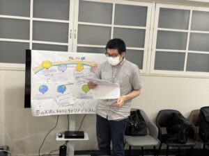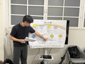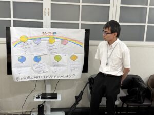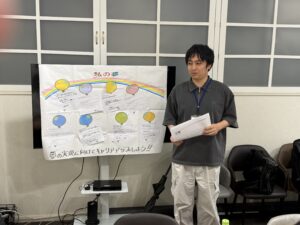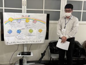 「夢の実現に向けてキャリアアップしよう!」と題した模造紙に、一人ひとりの目標や想いを書き出し、それを発表しました。